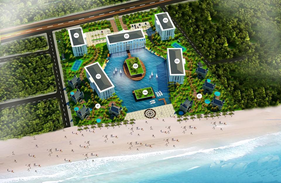 Ý tưởng thiết kế chính của dự án tạo tầm nhìn ra biển cho tất cả các công trình đã hình thành nên hình thái một khu resort hài hòa giữa công trình nhân tạo và vẻ đẹp tự nhiên, mang đậm tính chất một resort ven biển hạng 6 sao với cảnh quan tuyệt đẹp của hồ điều hòa 1,6 ha cũng là bãi biển nhân tạo, du khách tơi đây tận hưởng kỳ nghỉ nếu không muốn ra ngoài biển để bơi có thể bơi ngay trong khu dự án vì toàn bộ hệ thống nước trong hồ đều là nguồn nước biển đã được sử lý sạch sẽ để đưa vào sử dụng điểm đặc biệt hơn nữa là dưới mặt hồ sẽ là một hệ thống 50 phòng khách sạn cao cấp, nhà hàng, bar… có view kính nhìn ra hồ nước, xung quanh là thảm thực vật biển và các loại cá bơi lội nhiều màu sặc sỡ, du khách được tận hưởng các dịch vụ hạng sang trọng có thể nói là loại bậc nhất chưa có ở Việt Nam.