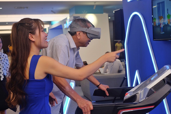 Một trong những hoạt động đầu tiên mà khách mời, đặc biệt là các bạn trẻ năng động tìm đến trải nghiệm là tại khu Thể thao thông minh. Mỗi người sẽ đeo kính thực tế ảo VR, chạy bộ trên băng chuyền, và vượt chướng ngại vật ảo để “đến được” các tiện ích cảnh quan tại Vinhomes Smart City