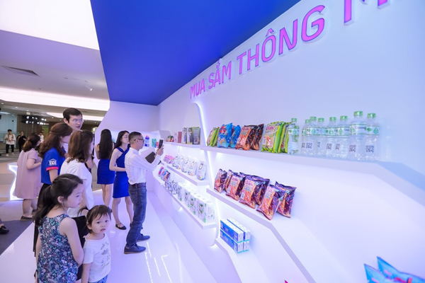 Trong khi đó booth trải nghiệm Mua sắm thông minh bằng smartphone thu hút sự quan tâm của khá nhiều khách tham quan. Đây cũng là hình thức mua sắm hiện đại tại Vinhomes Smart City trong tương lai, giúp cư dân shopping tiện lợi không cần tiền mặt hay mang theo bất kỳ loại thẻ nào.