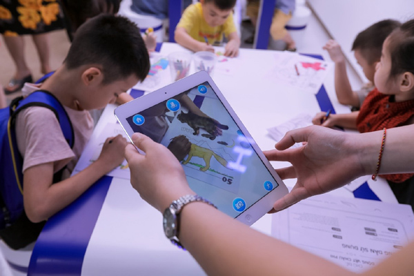 Hoạt động thu hút các gia đình tại sự kiện chính là khu vực tô màu thông minh. Chỉ qua một ứng dụng trên điện thoại, bức tranh mà các bé đang vẽ trên giấy sẽ được kết nối trực tiếp với điện thoại của bố mẹ hoặc trên các màn hình rộng như tivi, iPad với nhiều hiệu ứng thú vị để các thành viên trong gia đình có thể tô màu cùng nhau. Bên cạnh hoạt động này, các trò chơi tương tác khác … cũng thu hút không ít trẻ em tham gia tại sự kiện