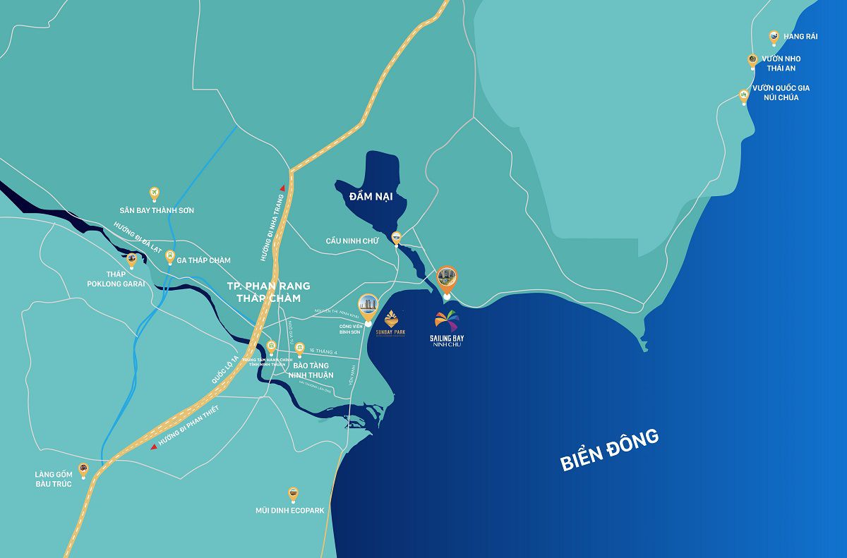 Dự án Sailing Bay Ninh Chu sở hữu vị trí đắc địa nằm ở khu đất vàng hình con tàu hướng ra biển của huyện Ninh Hải, tỉnh Ninh Thuận. Khu nghỉ dưỡng Sailing Bay Ninh Chữ chỉ cách thị xã Phan Rang 9km mất khoảng hơn 10 phút di chuyển bằng đường bộ.
