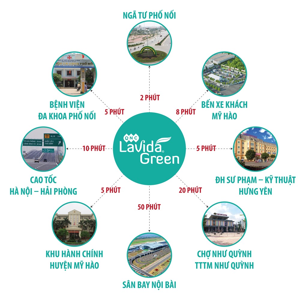 Với lợi thế sở hữu vị trí trung tâm đô thị Phố Nối, nơi tập trung dân cư đông đúc, liền kề các khu công nghiệp lớn Lavida Green được thừa hưởng toàn bộ hệ thống tiện ích vùng hiện đại, trong vòng bán kính 2km cư dân có thể dễ dàng di chuyển đến: Chợ Bao Bì, bến xe Mỹ Hào, bệnh viện đa khoa Phố Nối, Đh Sư phạm – Kỹ thuật Hưng Yên,… Đặc biệt vị trí tọa lạc “vàng” còn mở ra cơ hội đầu tư kinh doanh cực lớn cho cư dân tương lai.