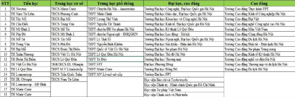 Đây cũng là khu vực tập trung nhiều trường học quốc tế, trường học trọng điểm như Trường liên cấp Marie Curie, Trường Đoàn Thị Điểm, Trường Lương Thế Vinh, Trường Chuyên Amsterdam hay ĐH FPT, ĐH Thương Mại, ĐH Ngoại ngữ, ĐH Sư Phạm,… mang lại một hệ thống giáo dục uy tín và chất lượng hàng đầu.