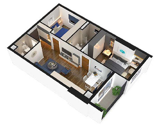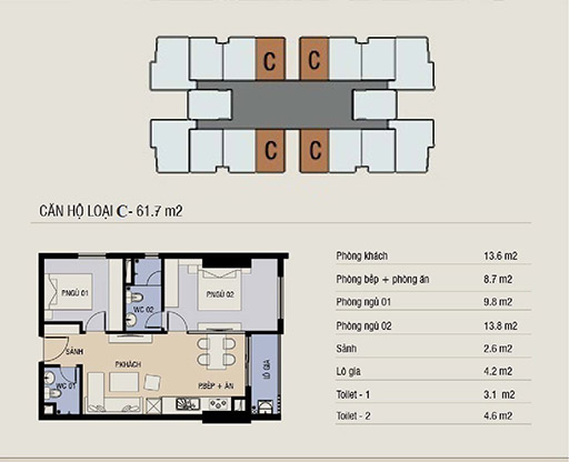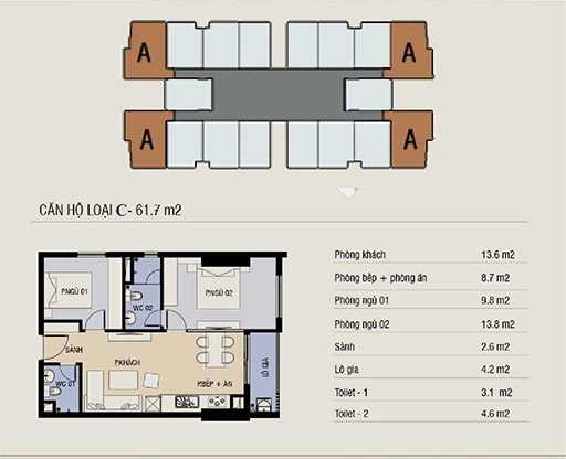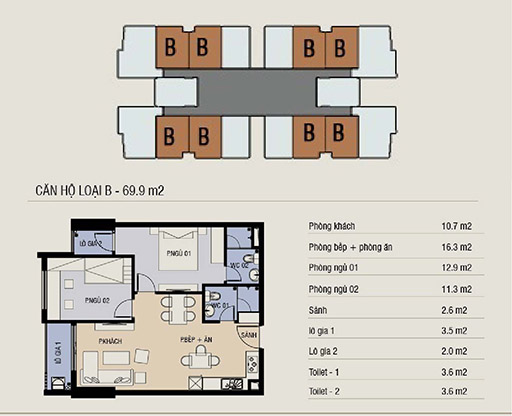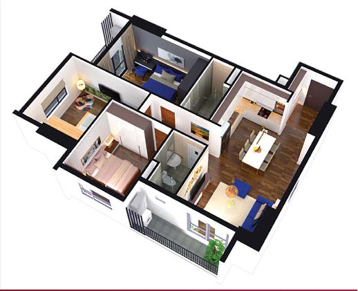 ♣ Loại hình căn hộ: Căn 2 PN (61-69 m2), 3 PN (96 m2).
