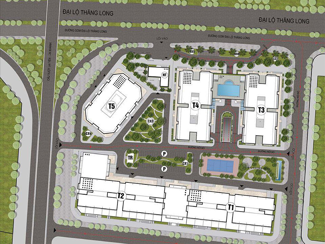 - Phía Nam: Tiếp giáp với Tòa T1 với không gian view nội khu với khu vui chơi trẻ em ngoài trời, bể bơi….
